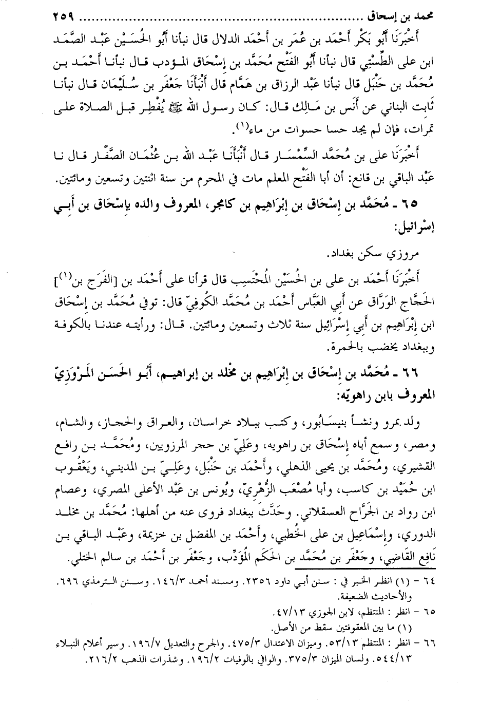 65- محمد بن إسحاق بن إبراهيم بن كامجر، المعروف والده بإسحاق بْن أبي إسرائيل [2] :