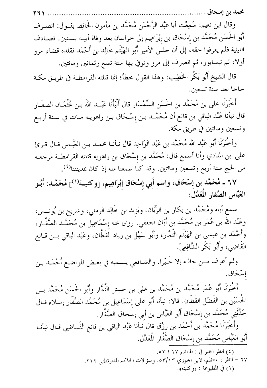 67-[2] محمد بن إسحاق، واسم أبي إسحاق إبراهيم، [وكنية [3]] محمد: أبو العباس الصفار المعدل: