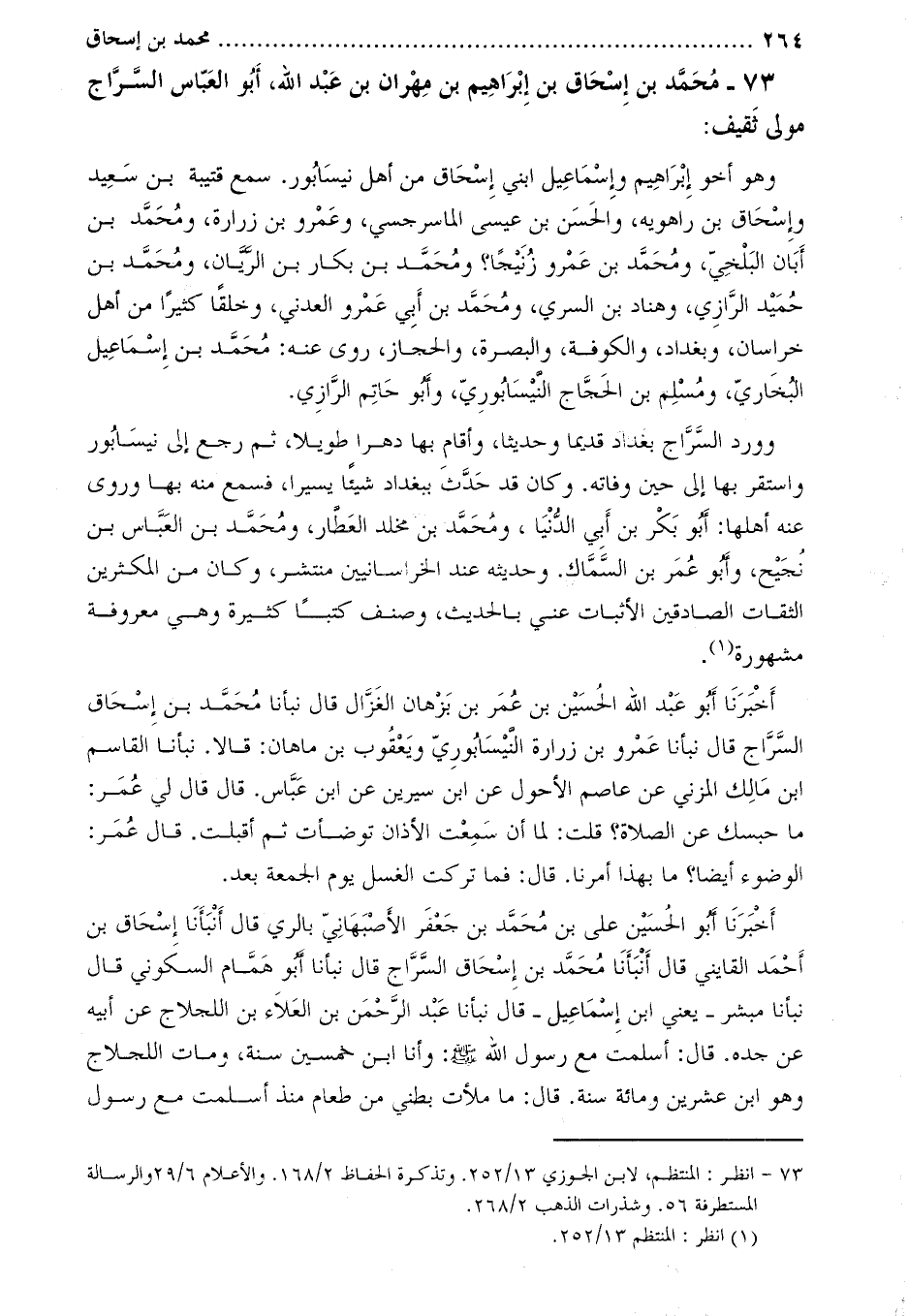 73- مُحَمَّد بْن إِسْحَاق بْن إِبْرَاهِيم بْن مهران بْن عبد الله، أبو العباس السراج مولى ثقيف [1] :