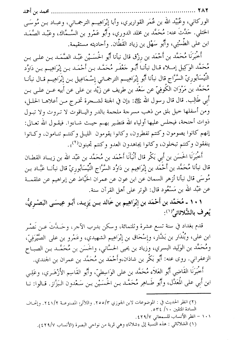 101-[2] محمد بن أحمد بن إبراهيم بن خالد بن يزيد، أبو عيسى البصري، يعرف بالشلاثائي [3] :