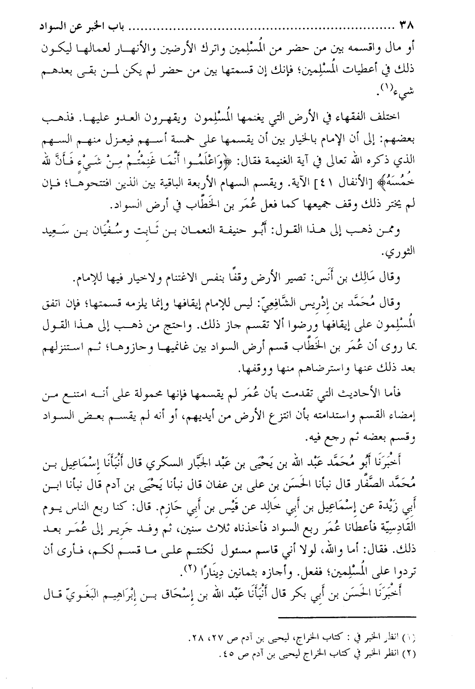 [2] انظر الخبر في كتاب الخراج ليحيى بن آدم ص 45.