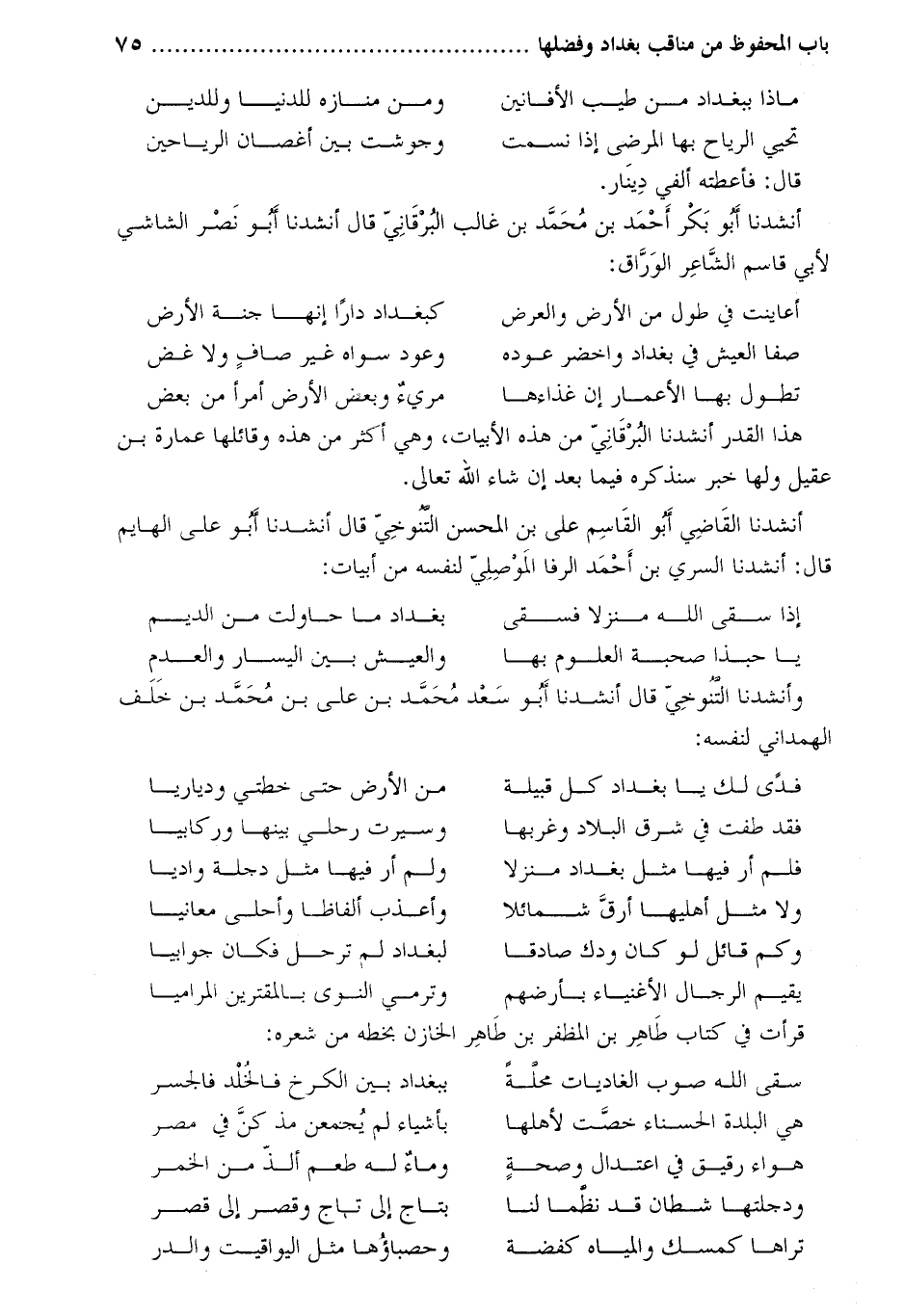 أنشدنا القاضي أَبُو القاسم علي بْن المحسن التنوخي قَالَ أنشدنا أَبُو علي الهائم قَالَ: أنشدنا السري بْن أَحْمَد الرفاء الموصلي لنفسه من أبيات: