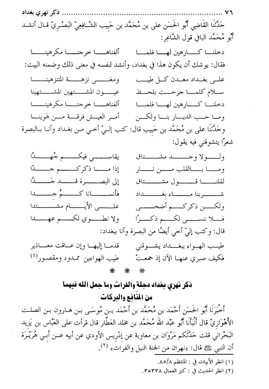ذكر نهري بغداد دجلة والفرات وما جعل الله فيهما من المنافع والبركات