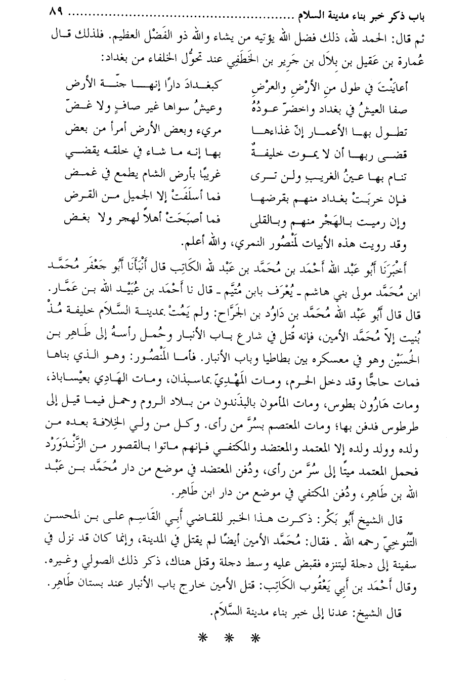 قال الشيخ: عدنا إلى خبر بناء مدينة السلام.