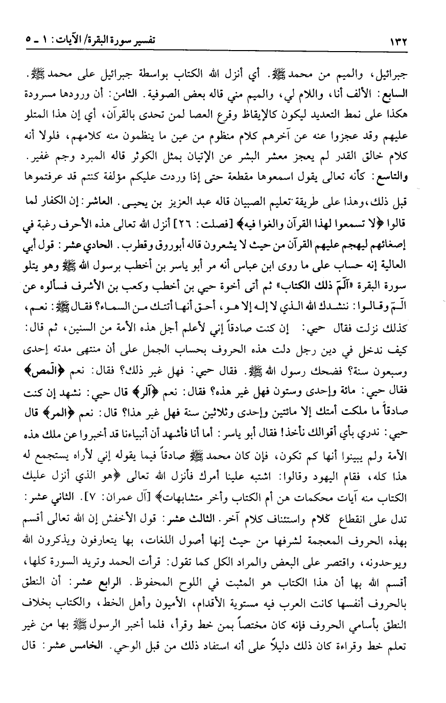 روى ابن عباس أنه مر أبو ياسر بن أخطب برسول الله صلى الله عليه وسلم وهو يتلو سورة البقرة «آلم ذلك الكتاب» ثم أتى أخوة حيي بن أخطب وكعب بن الأشرف فسألوه عن الم وقالوا: ننشدك الله الذي لا إله إلا هو، أحق أنها أتتك من السماء؟ فقال صلى الله عليه وسلم: نعم، كذلك نزلت فقال حيي: إن كنت صادقا إني لأعلم أجل هذه الأمة من السنين، ثم قال: