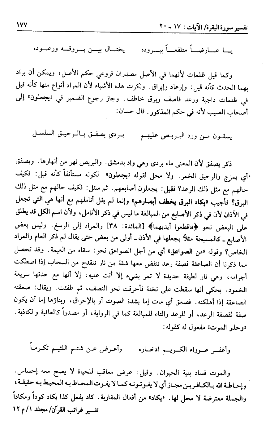 وإحاطة الله بالكافرين مجاز أي لا يفوتونه كما لا يفوت المحاط به المحيط به حقيقة، والجملة معترضة لا محل لها. «يكاد» من أفعال المقاربة. كاد يفعل كذا يكاد كودا ومكادا