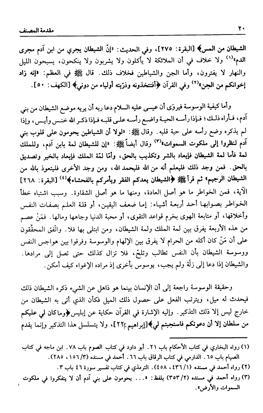 وقال أيضا صلى الله عليه وسلم: «إن للشيطان لمة بابن آدم، وللملك لمة فأما لمة الشيطان فإيعاد بالشر وتكذيب بالحق، وأمّا لمّة الملك فإيعاد بالخير وتصديق بالحق. فمن وجد ذلك فليعلم أنه من الله فليحمد الله، ومن وجد الأخرى فليتعوذ بالله من الشيطان الرجيم» ثم قرأ صلى الله عليه وسلم الشَّيْطانُ يَعِدُكُمُ الْفَقْرَ وَيَأْمُرُكُمْ بِالْفَحْشاءِ [البقرة: 268]
