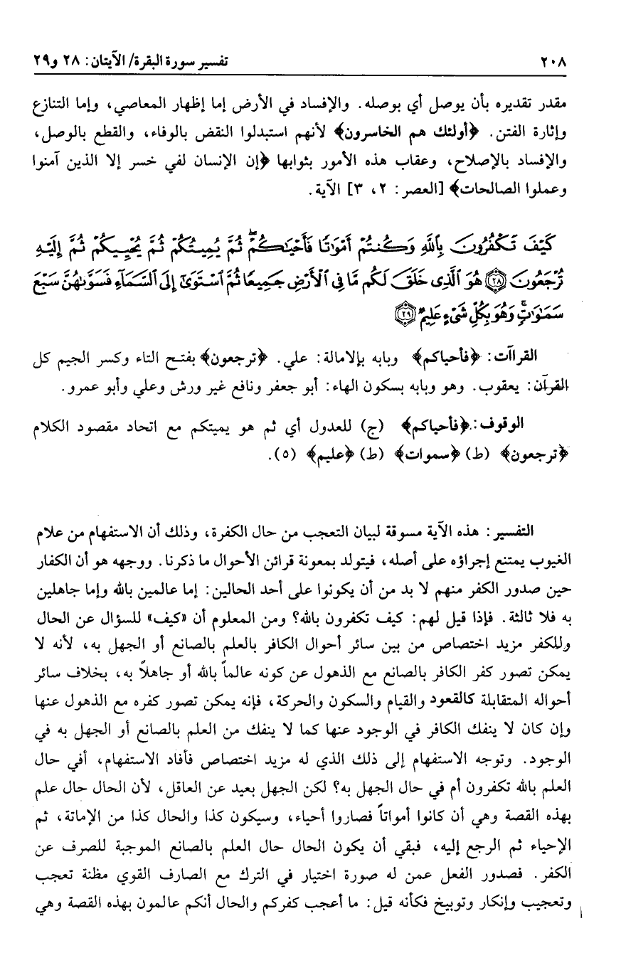 فَأَحْياكُمْ (ج) للعدول أي ثم هو يميتكم مع اتحاد مقصود الكلام تُرْجَعُونَ (ط) سَماواتٍ (ط) عَلِيمٌ (هـ) .