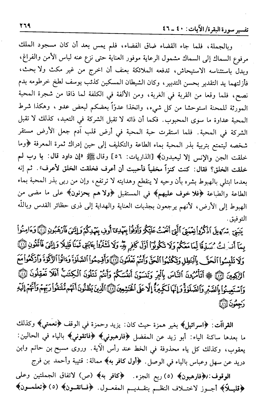 إِسْرائِيلَ بغير همزة حيث كان: يزيد وحمزة في الوقف نِعْمَتِيَ وكذلك ما بعدها ساكنة الياء: أبو زيد عن المفضل فَارْهَبُونِ فَاتَّقُونِ بالياء في الحالين: