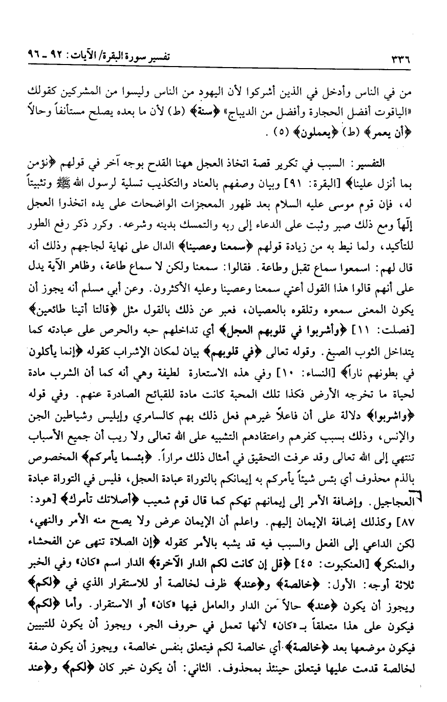 من في الناس وأدخل في الذين أشركوا لأن اليهود من الناس وليسوا من المشركين كقولك «الياقوت أفضل الحجارة وأفضل من الديباج» سَنَةٍ (ط) لأن ما بعده يصلح مستأنفا وحالا أَنْ يُعَمَّرَ (ط) يَعْمَلُونَ (هـ) .
