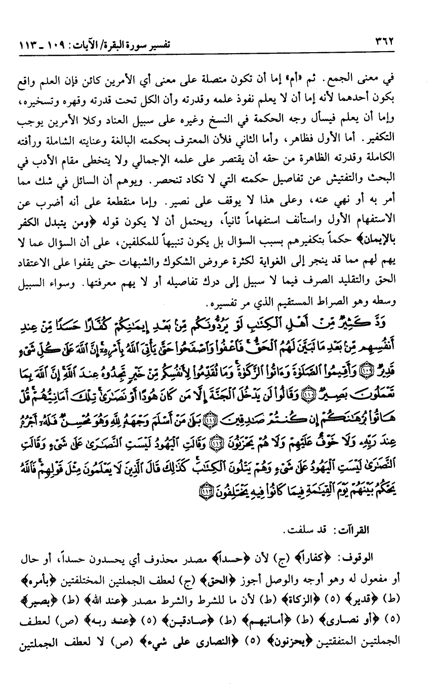 في معنى الجمع. ثم «أم» إما أن تكون متصلة على معنى أي الأمرين كائن فإن العلم واقع بكون أحدهما لأنه إما أن لا يعلم نفوذ علمه وقدرته وأن الكل تحت قدرته وقهره وتسخيره، وإما أن يعلم فيسأل وجه الحكمة في النسخ وغيره على سبيل العناد وكلا الأمرين يوجب التكفير. أما الأول فظاهر، وأما الثاني فلأن المعترف بحكمته البالغة وعنايته الشاملة ورأفته الكاملة وقدرته الظاهرة من حقه أن يقتصر على علمه الإجمالى ولا يتخطى مقام الأدب في البحث والتفتيش عن تفاصيل حكمته التي لا تكاد تنحصر. ويوهم أن السائل في شك مما أمر به أو نهي عنه، وعلى هذا لا يوقف على نصير. وإما منقطعة على أنه أضرب عن الاستفهام الأول واستأنف استفهاما ثانيا، ويحتمل أن لا يكون قوله وَمَنْ يَتَبَدَّلِ الْكُفْرَ بِالْإِيمانِ حكما بتكفيرهم بسبب السؤال بل يكون تنبيها للمكلفين، على أن السؤال عما لا يهم لهم مما قد ينجر إلى الغواية لكثرة عروض الشكوك والشبهات حتى يقفوا على الاعتقاد الحق والتقليد الصرف فيما لا سبيل إلى درك تفاصيله أو لا يهم معرفتها. وسواء السبيل وسطه وهو الصراط المستقيم الذي مر تفسيره.