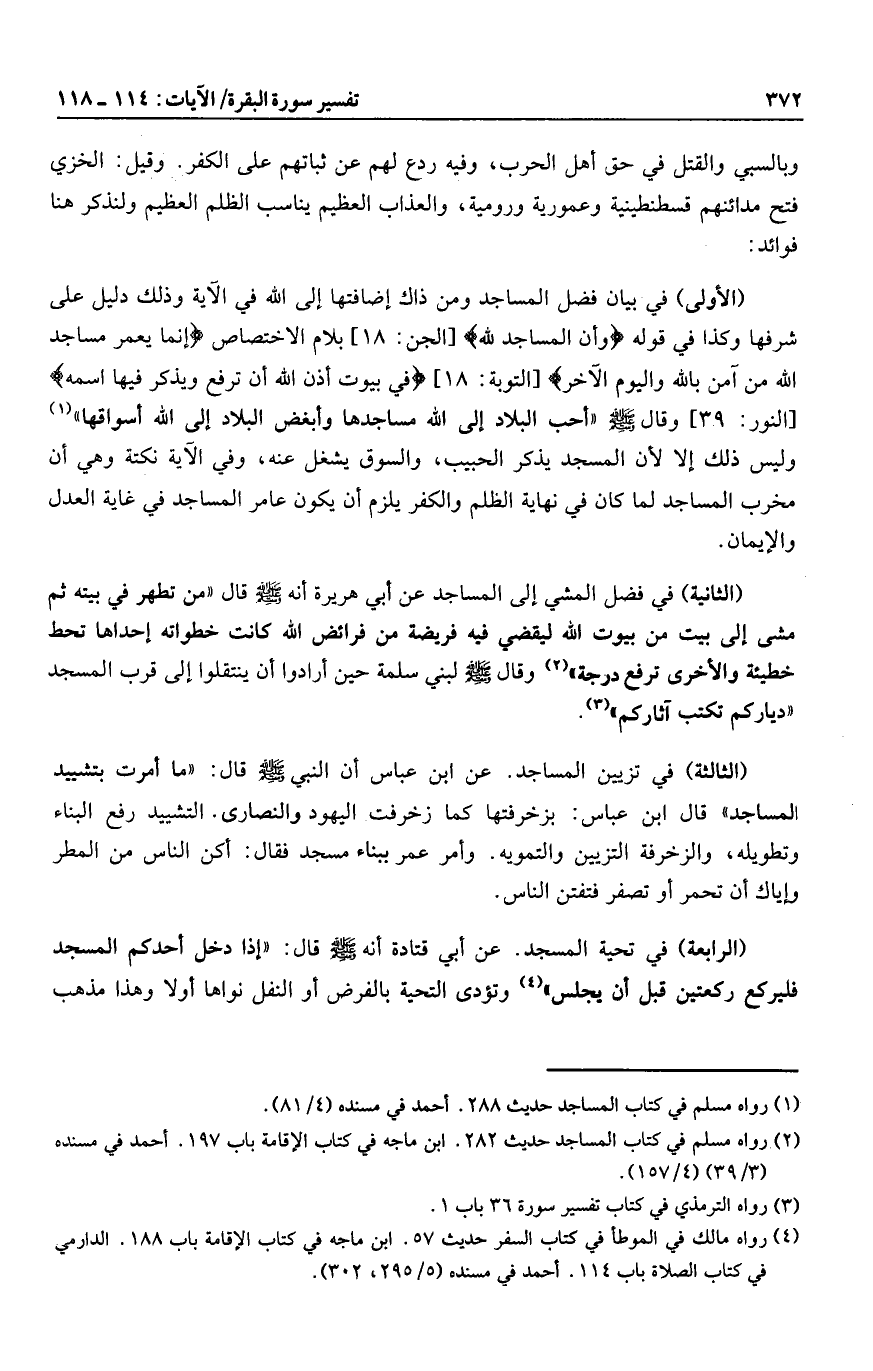 (2) رواه مسلم في كتاب المساجد حديث 282. ابن ماجه في كتاب الإقامة باب 197. أحمد في مسنده (3/ 39) (4/ 157) .