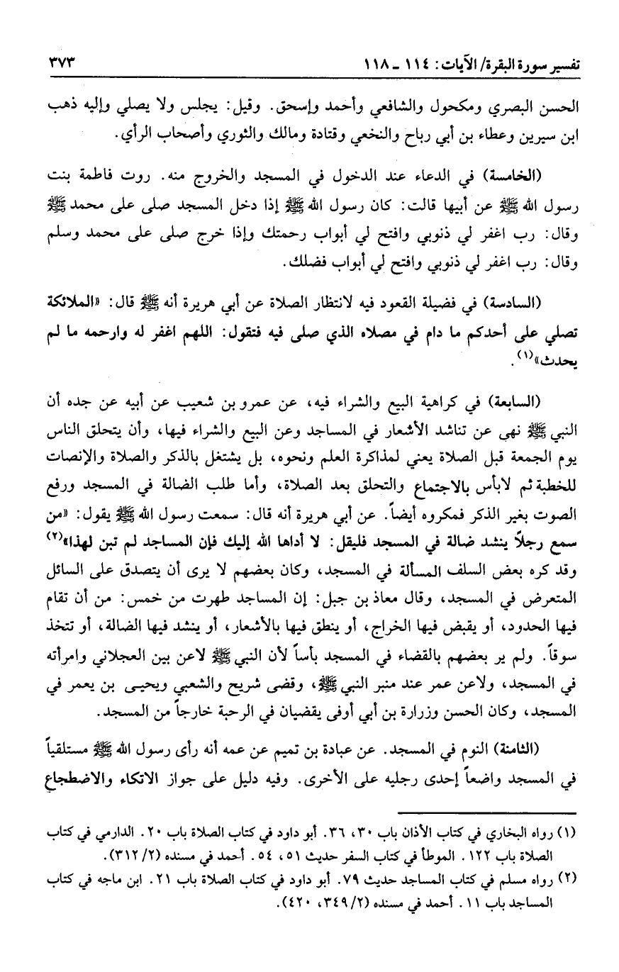 (2) رواه مسلم في كتاب المساجد حديث 79. أبو داود في كتاب الصلاة باب 21. ابن ماجه في كتاب المساجد باب 11. أحمد في مسنده (2/ 349، 420) .