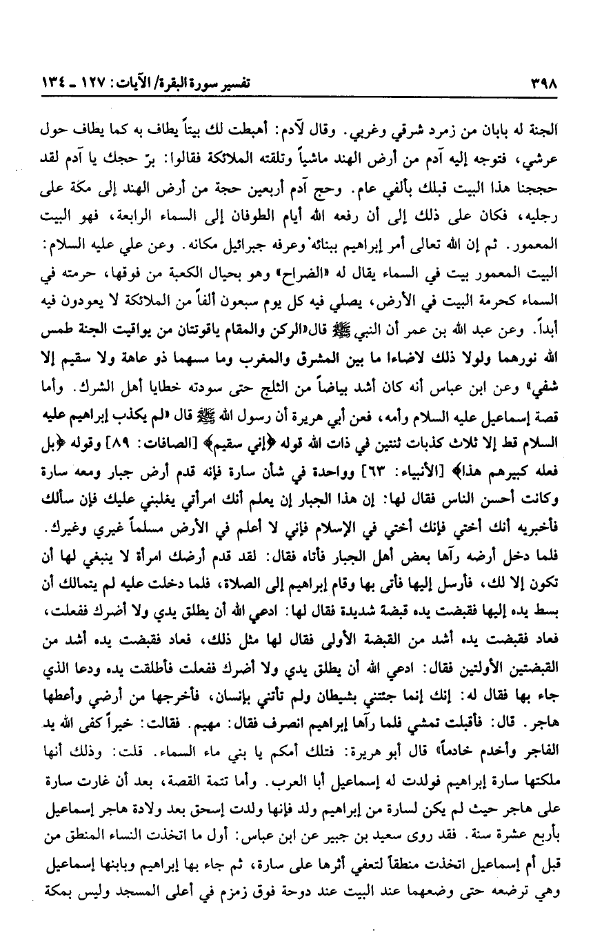قال أبو هريرة: فتلك أمكم يا بني ماء السماء. قلت: وذلك أنها ملكتها سارة إبراهيم فولدت له إسماعيل أبا العرب. وأما تتمة القصة، بعد أن غارت سارة على هاجر حيث لم يكن لسارة من إبراهيم ولد فإنها ولدت إسحق بعد ولادة هاجر إسماعيل بأربع عشرة سنة. فقد روى سعيد بن جبير عن ابن عباس: أول ما اتخذت النساء المنطق من قبل أم إسماعيل اتخذت منطقا لتعفي أثرها على سارة، ثم جاء بها إبراهيم وبابنها إسماعيل وهي ترضعه حتى وضعهما عند البيت عند دوحة فوق زمزم في أعلى المسجد وليس بمكة
