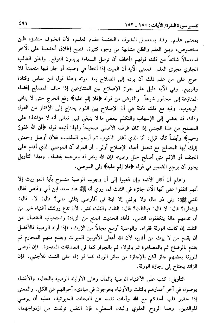 واعلم أن أكثر الأئمة وإن ذهبوا إلى أن وجوب الوصية منسوخ بآية المواريث إلا أنهم اتفقوا على أنها الآن جائزة في الثلث لما