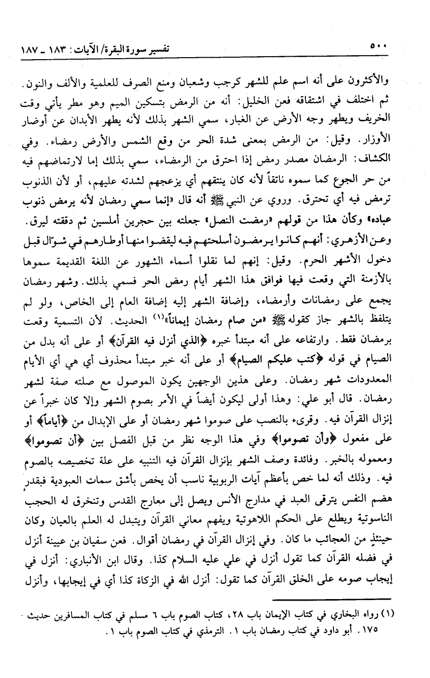 (1) رواه البخاري في كتاب الإيمان باب 28، كتاب الصوم باب 6 مسلم في كتاب المسافرين حديث 175. أبو داود في كتاب رمضان باب 1. الترمذي في كتاب الصوم باب 1.