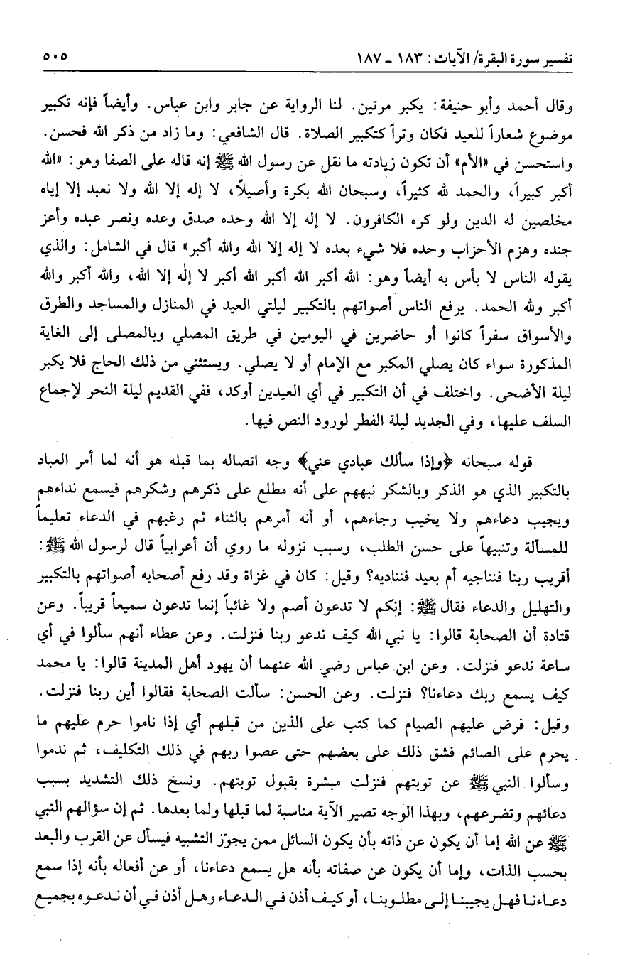 قوله سبحانه وَإِذا سَأَلَكَ عِبادِي عَنِّي وجه اتصاله بما قبله هو أنه لما أمر العباد بالتكبير الذي هو الذكر وبالشكر نبههم على أنه مطلع على ذكرهم وشكرهم فيسمع نداءهم ويجيب دعاءهم ولا يخيب رجاءهم، أو أنه أمرهم بالثناء ثم رغبهم في الدعاء تعليما للمسألة وتنبيها على حسن الطلب، وسبب نزوله ما