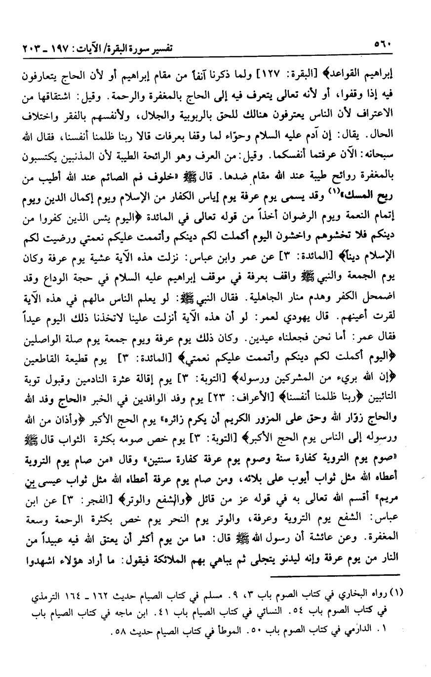 قال يهودي لعمر: لو أن هذه الآية أنزلت علينا لاتخذنا ذلك اليوم عيدا فقال عمر: أما نحن فجعلناه عيدين. وكان ذلك يوم عرفة ويوم جمعة يوم صلة الواصلين الْيَوْمَ أَكْمَلْتُ لَكُمْ دِينَكُمْ وَأَتْمَمْتُ عَلَيْكُمْ نِعْمَتِي [المائدة: 3] يوم قطيعة القاطعين أَنَّ اللَّهَ بَرِيءٌ مِنَ الْمُشْرِكِينَ وَرَسُولُهُ [التوبة: 3] يوم إقالة عثرة النادمين وقبول توبة التائبين رَبَّنا ظَلَمْنا أَنْفُسَنا [الأعراف: 23] يوم وفد الوافدين