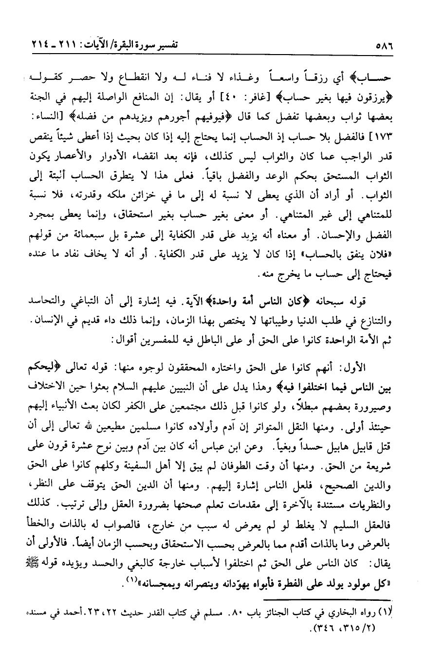 قوله سبحانه كانَ النَّاسُ أُمَّةً واحِدَةً الآية. فيه إشارة إلى أن التباغي والتحاسد والتنازع في طلب الدنيا وطيباتها لا يختص بهذا الزمان، وإنما ذلك داء قديم في الإنسان.
