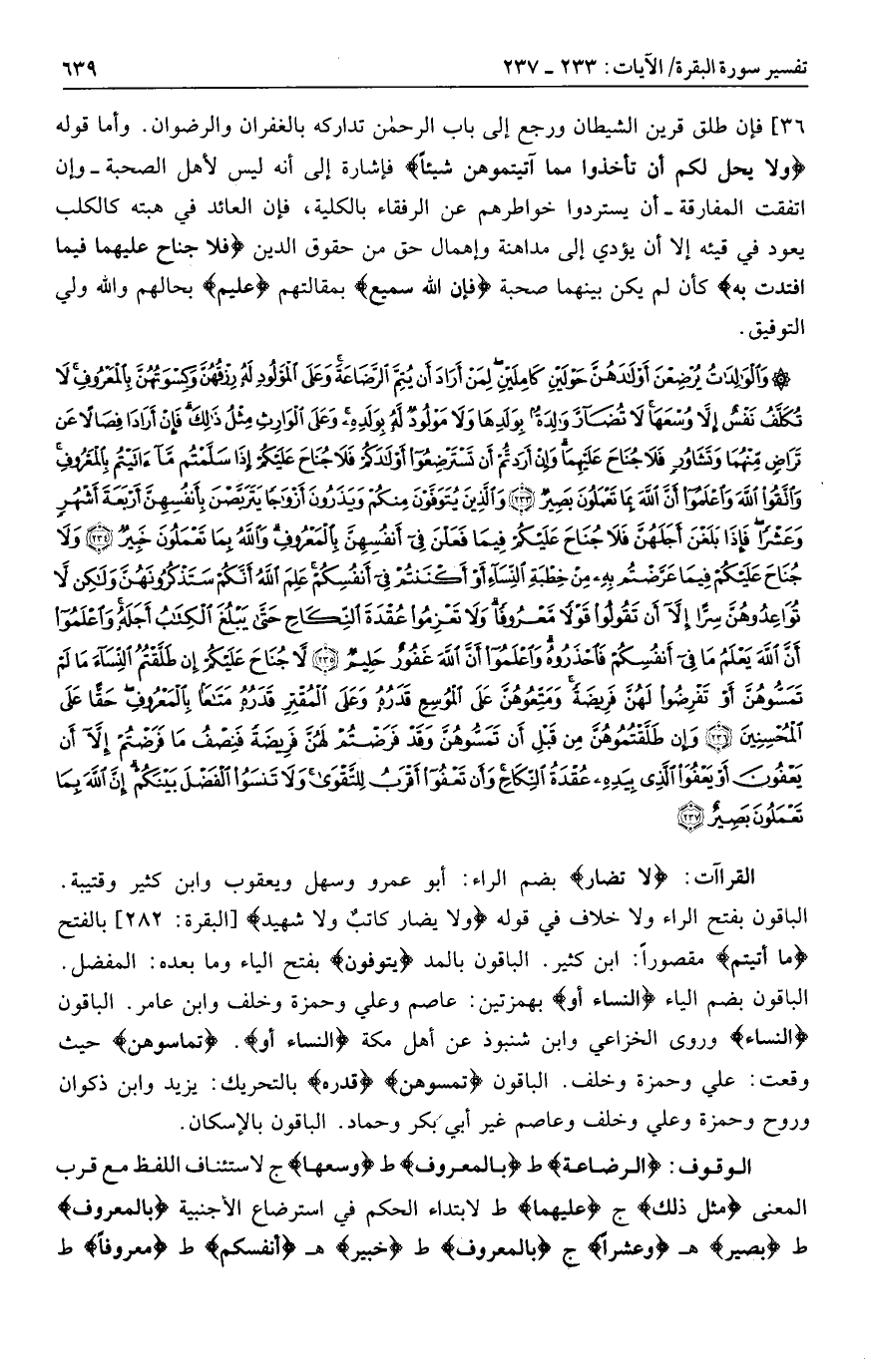 الرَّضاعَةَ ط بِالْمَعْرُوفِ ط وُسْعَها ج لاستئناف اللفظ مع قرب المعنى مِثْلُ ذلِكَ ج عَلَيْهِما ط لابتداء الحكم في استرضاع الأجنبية بِالْمَعْرُوفِ ط بَصِيرٌ هـ وَعَشْراً ج بِالْمَعْرُوفِ ط خَبِيرٌ هـ أَنْفُسِكُمْ ط مَعْرُوفاً ط