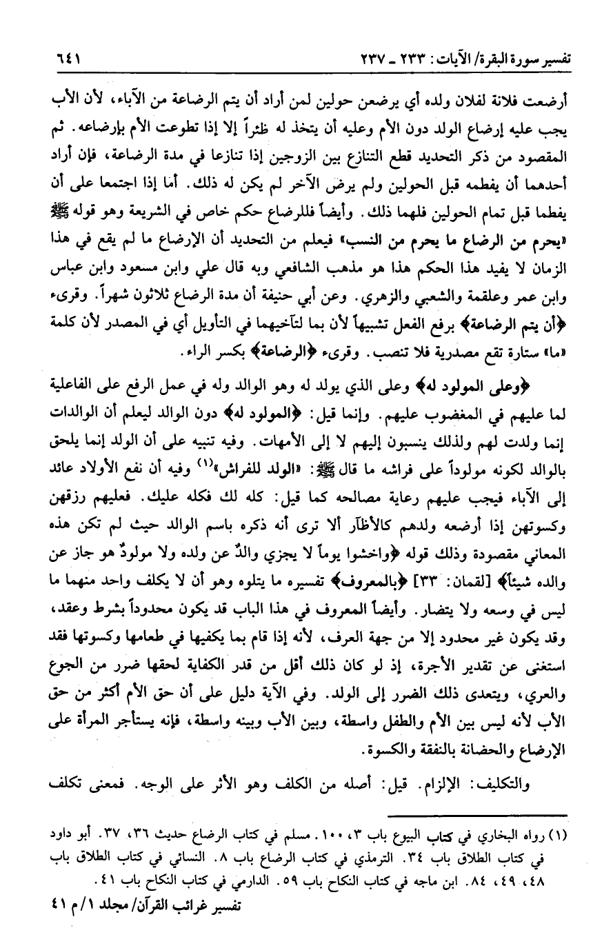 (1) رواه البخاري في كتاب البيوع باب 3، 100. مسلم في كتاب الرضاع حديث 36، 37. أبو داود في كتاب الطلاق باب 34. الترمذي في كتاب الرضاع باب 8. النسائي في كتاب الطلاق باب 48، 49، 84. ابن ماجه في كتاب النكاح باب 59. الدارمي في كتاب النكاح باب 41.