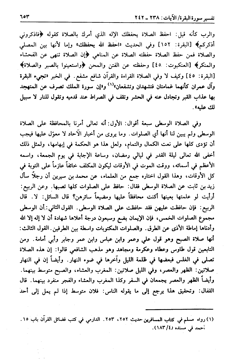(1) رواه مسلم في كتاب المسافرين حديث 252، 253. الدارمي في كتاب فضائل القرآن باب 15.
