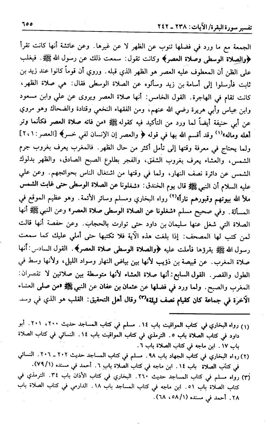 وعن حفصة أنها قالت لمن كتب لها المصحف: إذا بلغت هذه الآية فلا تكتبها حتى أملي عليك كما سمعت رسول الله صلى الله عليه وسلم يقرؤها فأملت عليه والصلاة الوسطى صلاة العصر.