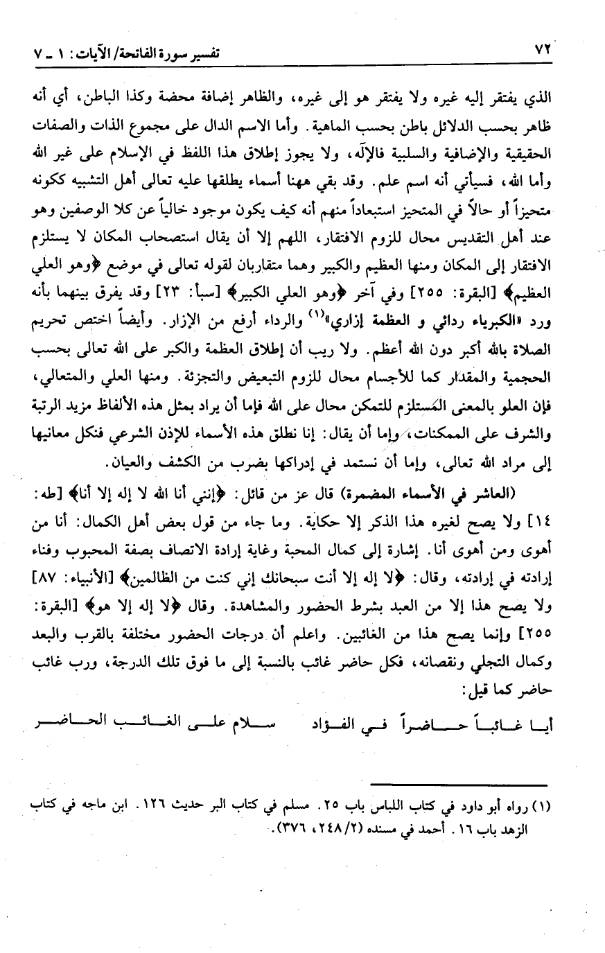 14] ولا يصح لغيره هذا الذكر إلا حكاية. وما جاء من قول بعض أهل الكمال: أنا من أهوى ومن أهوى أنا. إشارة إلى كمال المحبة وغاية إرادة الاتصاف بصفة المحبوب وفناء إرادته في إرادته، وقال: لا إِلهَ إِلَّا أَنْتَ سُبْحانَكَ إِنِّي كُنْتُ مِنَ الظَّالِمِينَ [الأنبياء: 87] ولا يصح هذا إلا من العبد بشرط الحضور والمشاهدة. وقال لا إِلهَ إِلَّا هُوَ [البقرة: