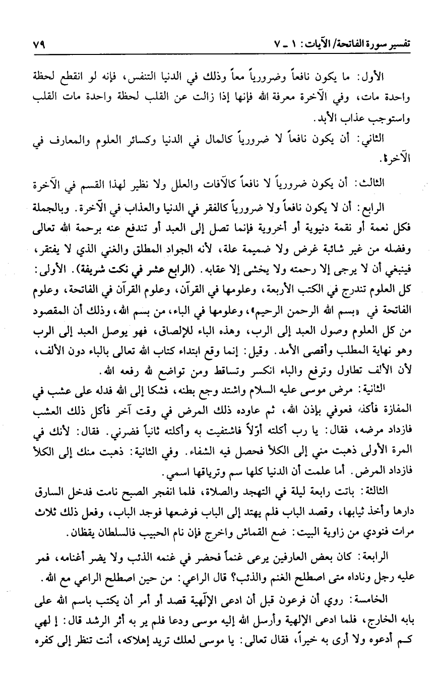 الأول: ما يكون نافعا وضروريا معا وذلك في الدنيا التنفس، فإنه لو انقطع لحظة واحدة مات، وفي الآخرة معرفة الله فإنها إذا زالت عن القلب لحظة واحدة مات القلب واستوجب عذاب الأبد.