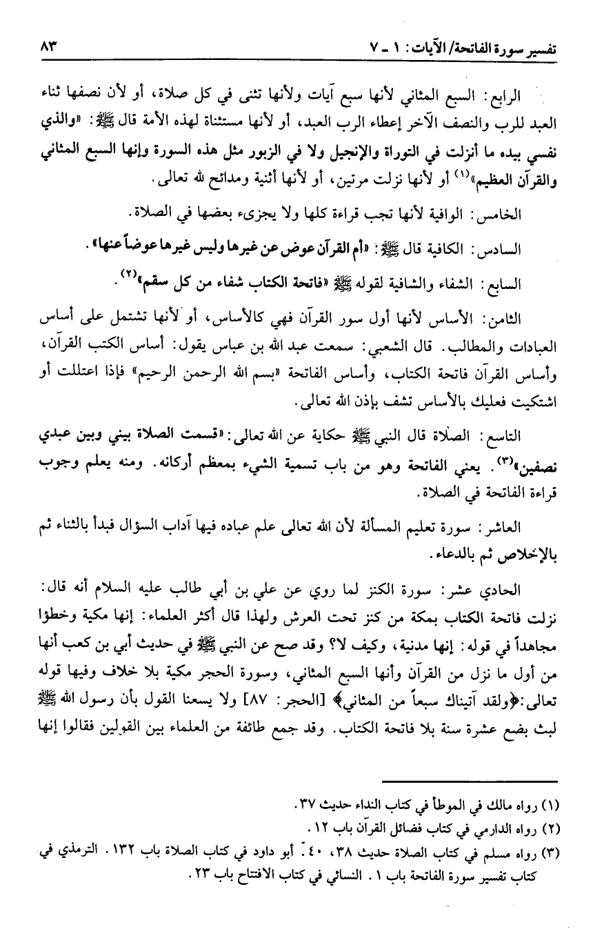 (3) رواه مسلم في كتاب الصلاة حديث 38، 40. أبو داود في كتاب الصلاة باب 132. الترمذي في كتاب تفسير سورة الفاتحة باب 1. النسائي في كتاب الافتتاح باب 23.