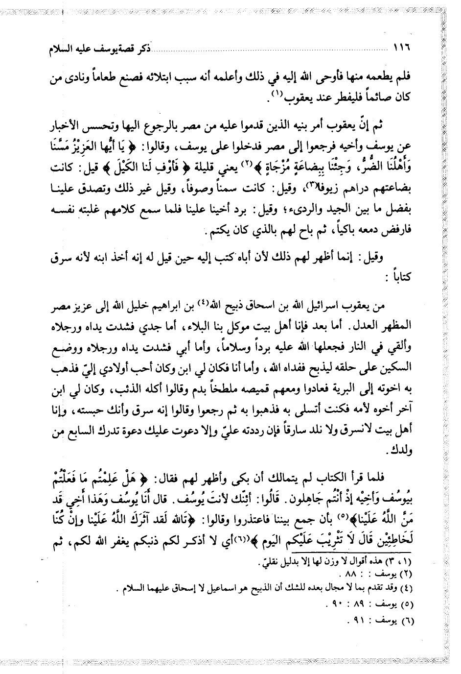 من يعقوب إسرائيل بن اسحاق ذبيح الله بن إبراهيم خليل الله إلى عزيز مصر المظهر العدل أما بعد فإنا أهل بيت موكل بنا البلاء أما جدي فشدت يداه ورجلاه وألقي في النار فجعلها الله عليه بردا وسلاما أما أبي فشدت يداه ورجلاه ووضع السكين على حلقه ليذبح ففداه الله وأما أنا فكان لي ابن وكان أحب أولادي إلي فذهب به اخوته إلى البرية فعادوا ومعهم قميصه ملطخا بدم وقالوا أكله الذئب وكان لي ابن آخر أخوه لأمه فكنت أتسلى به فذهبوا به ثم رجعوا وقالوا إنه سرق وأنك حبسته وإنا أهل بيت لا نسرق ولا نلد سارقا فإن رددته علي وإلا دعوت عليك دعوة تدرك السابع من ولدك