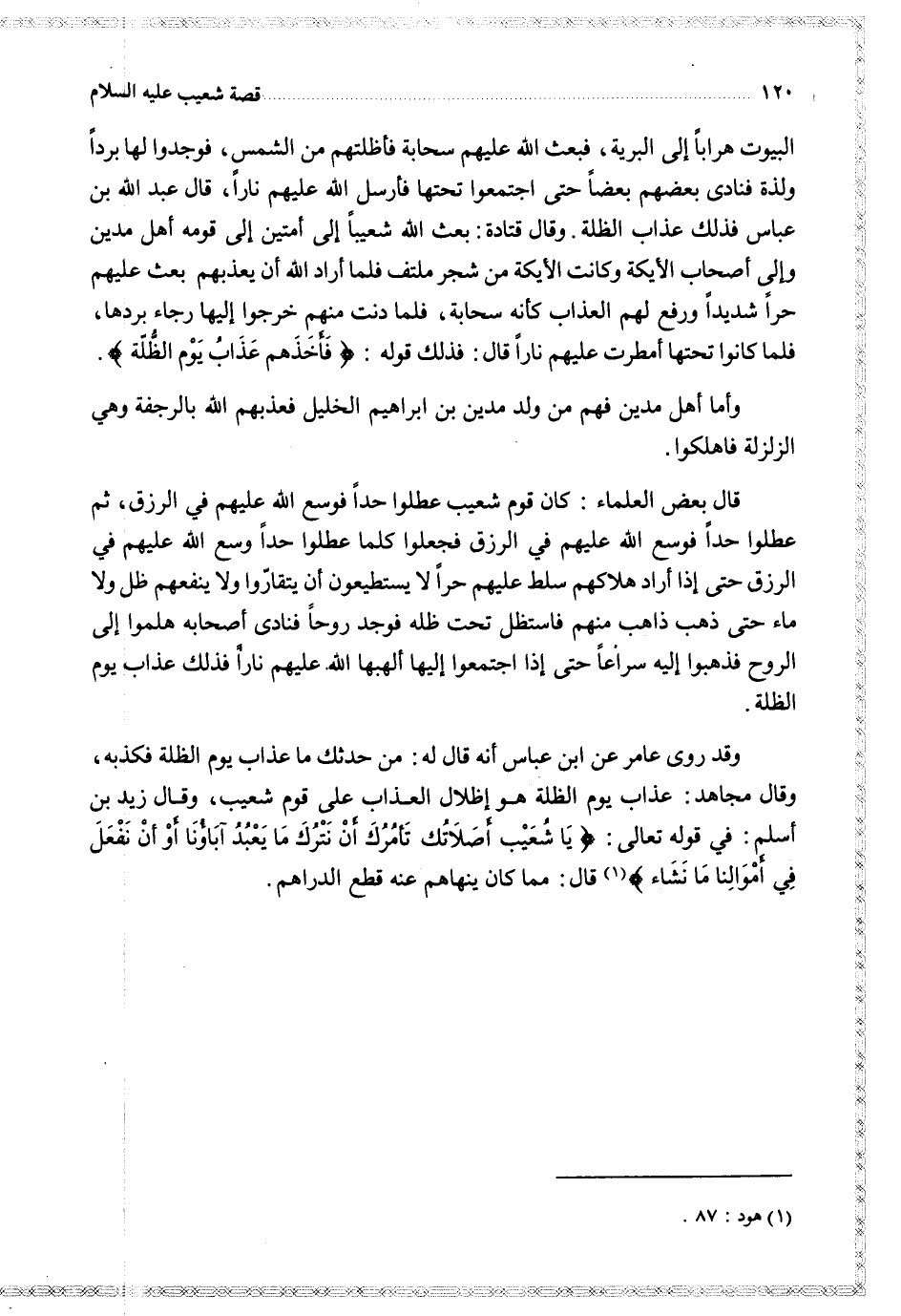 وقد روى عامر عن ابن عباس أنه قال له من حدثك ما عذاب يوم الظلة فكذبه وقال مجاهد عذاب يوم الظلة هو إظلال العذاب على قوم شعيب وقال زيد بن أسلم في قوله تعالى { يا شعيب أصلاتك تأمرك أن نترك ما يعبد آباؤنا أو أن نفعل في أموالنا ما نشاء } قال مما كان ينهاهم عنه قطع الدراهم
