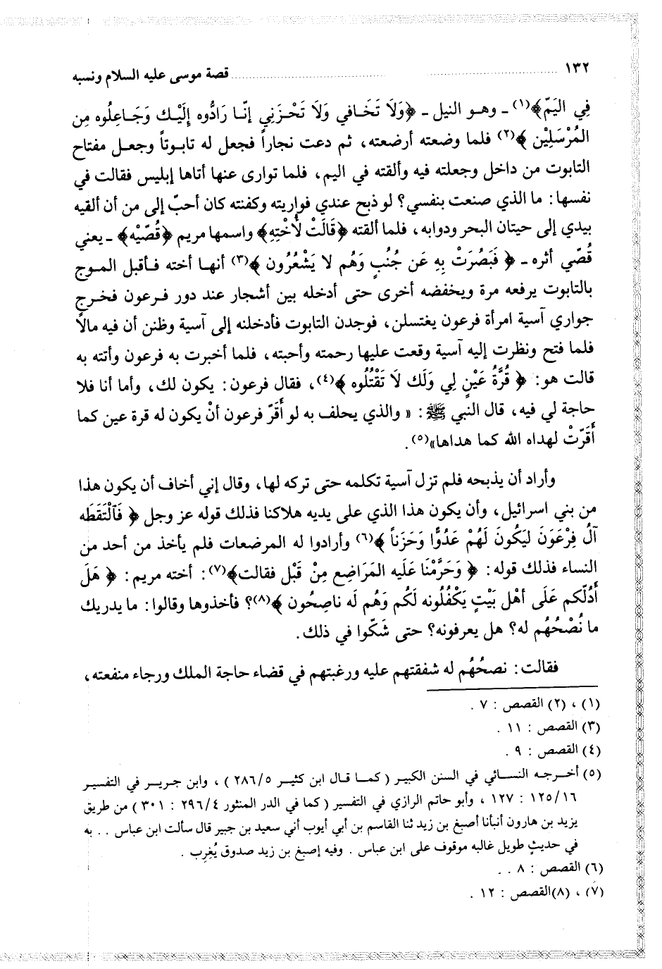 وأراد أن يذبحه فلم تزل آسية تكلمه حتى تركه لها وقال إني أخاف أن يكون هذا من بني إسرائيل وأن يكون هذا الذي على يديه هلاكنا فذلك قوله عز وجل { فالتقطه آل فرعون ليكون لهم عدوا وحزنا } وأرادوا له المرضعات فلم يأخذ من أحد من النساء فذلك قوله { وحرمنا عليه المراضع من قبل فقالت } أخته مريم { هل أدلكم على أهل بيت يكفلونه لكم وهم له ناصحون } فأخذوها وقالوا ما يدريك ما نصحهم له هل يعرفونه حتى شكوا في ذلك