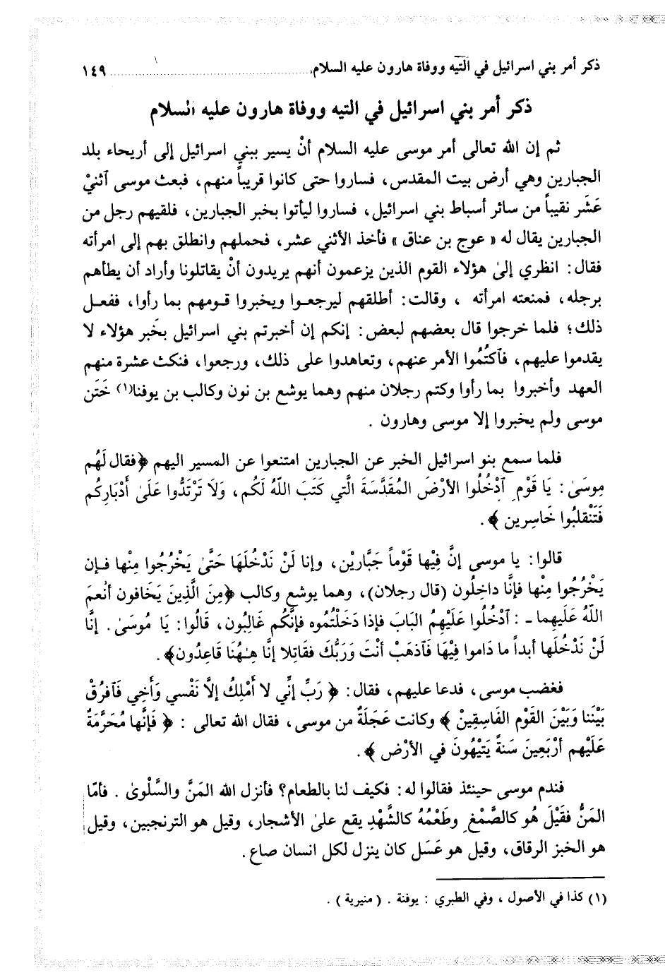 $ ذكر أمر بني إسرائيل في التيه ووفاة هارون عليه السلام $