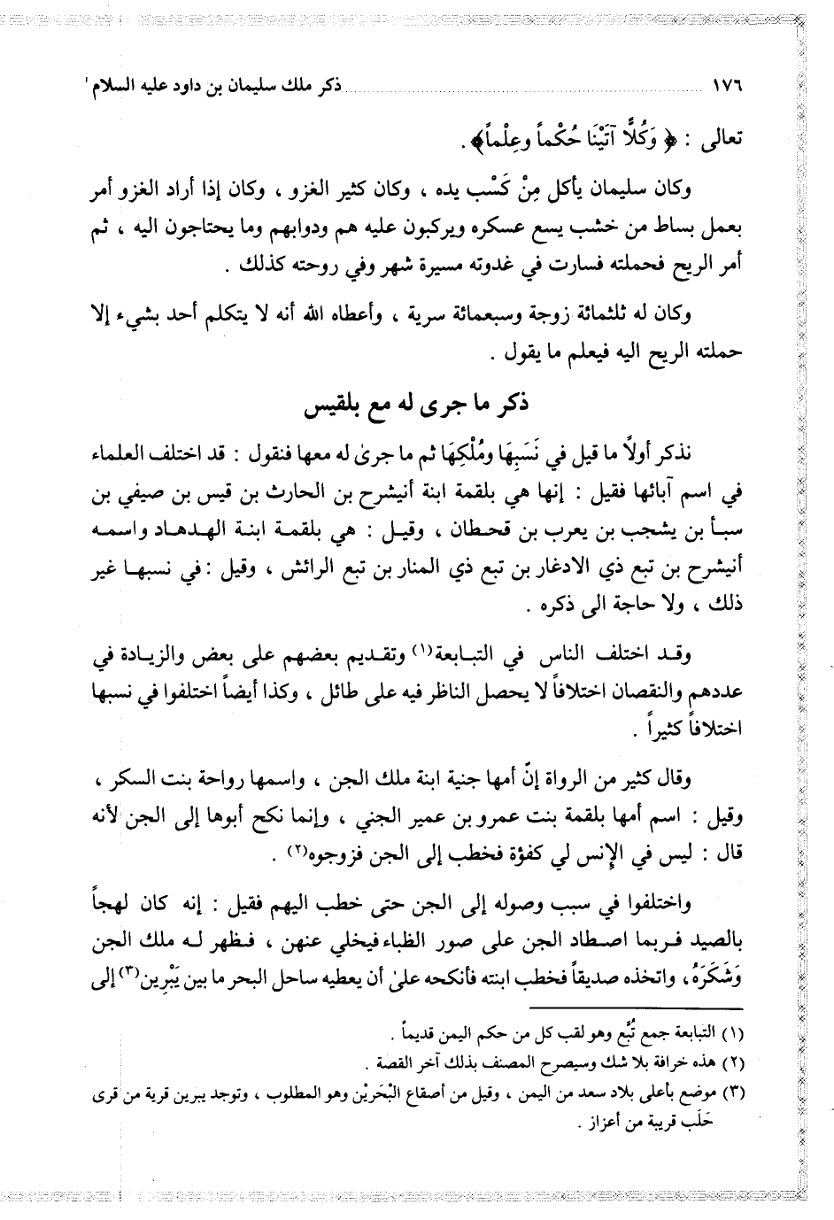 نذكر أولا ما قيل في نسبها وملكها ثم ما جرى له معها فنقول قد اختلف العلماء في اسم آبائها فقيل إنها هي بلقمة ابنة أنيشرح بن الحارث بن قيس بن صيفي بن سبأ بن يشجب بن يعرب بن قحطان وقيل هي بلقمة ابنة الهدهاد واسمه أنيشرح بن تبع ذي الادغار ذي المنار بن تبع الرائش وقيل في نسبها غير ذلك ولا حاجة إلى ذكره