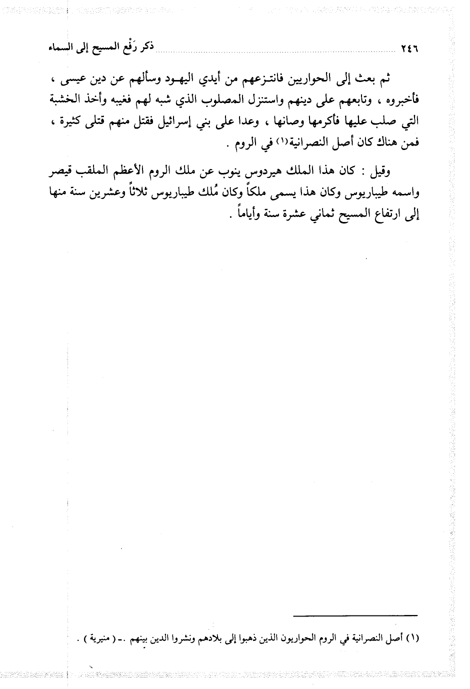 ثم بعث إلى الحواريين فانتزعهم من أيدي اليهود وسألهم عن دين عيسى فأخبروه وتابعهم على دينهم واستنزل المصلوب الذي شبه لهم فغيبه وأخذ الخشبة التي صلب عليها فأكرمها وصانها وعدا على بني إسرائيل فقتل منهم قتلى كثيرة فمن هناك كان أصل النصرانية في الروم
