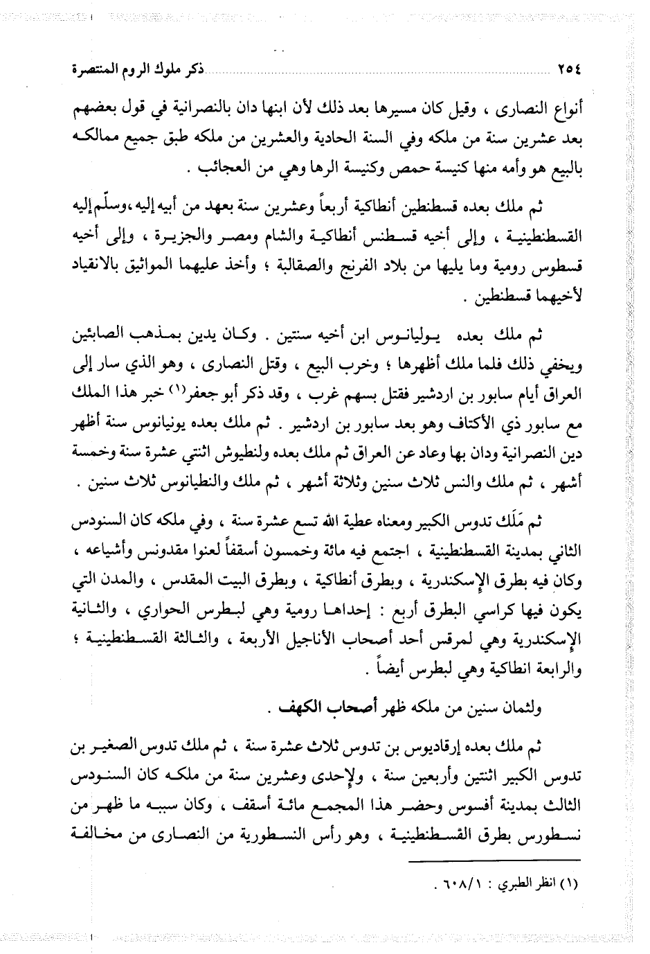 ثم ملك بعد يوليانوس ابن أخيه سنتين وكان يدين بمذهب الصابئين ويخفي ذلك فلما ملك أظهرها وخرب البيع وقتل النصارى وهو الذي سار إلى العراق أيام سابور بن اردشير فقتل بسهم غرب وقد ذكر أبو جعفر خبر هذا الملك مع سابور ذي الأكتاف وهو بعد سابور بن اردشير ثم ملك بعده يونيانوس سنة أظهر دين النصرانية ودان بها وعاد عن العراق ثم ملك بعده ولنطيوش اثنتي عشرة سنة وخمسة أشهر ثم ملك والنس ثلاث سنين وثلاثة أشهر ثم ملك والنطيانوس ثلاث سنين