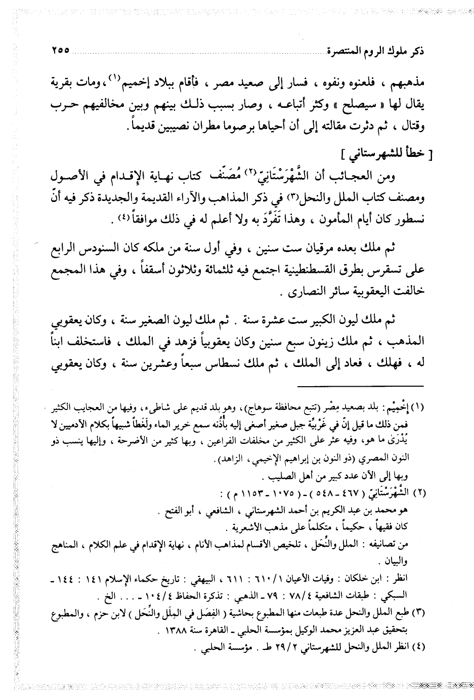 ومن العجائب أن الشهرستاني مصنف كتاب نهاية الإقدام في الأصول ومصنف كتاب الملل والنحل في ذكر المذاهب والآراء القديمة والجديدة ذكر فيه أن نسطور كان أيام المأمون وهذا تفرد به ولا أعلم له في ذلك موافقا