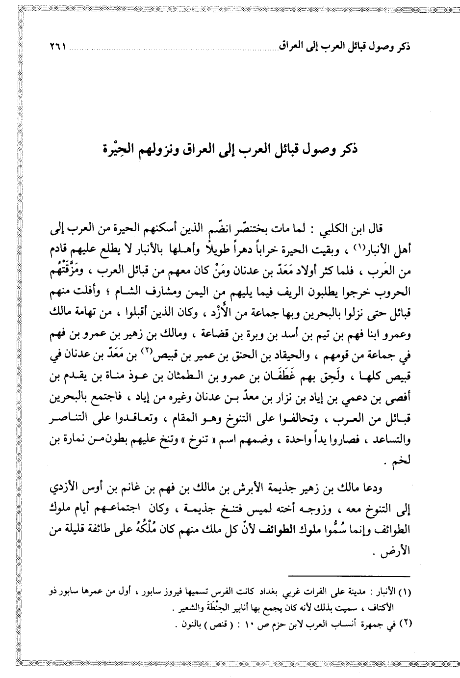$ ذكر وصول قبائل العرب إلى العراق ونزولهم الحيرة $