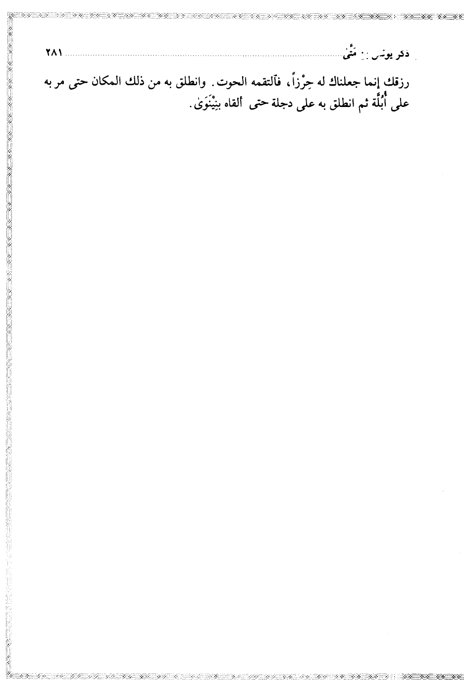 رزقك إنما جعلناك له حرزا فالتقمه الحوت وانطلق به من ذلك المكان حتى مر به على أبله ثم انطلق به على دجلة حتى ألقاه بنينوى