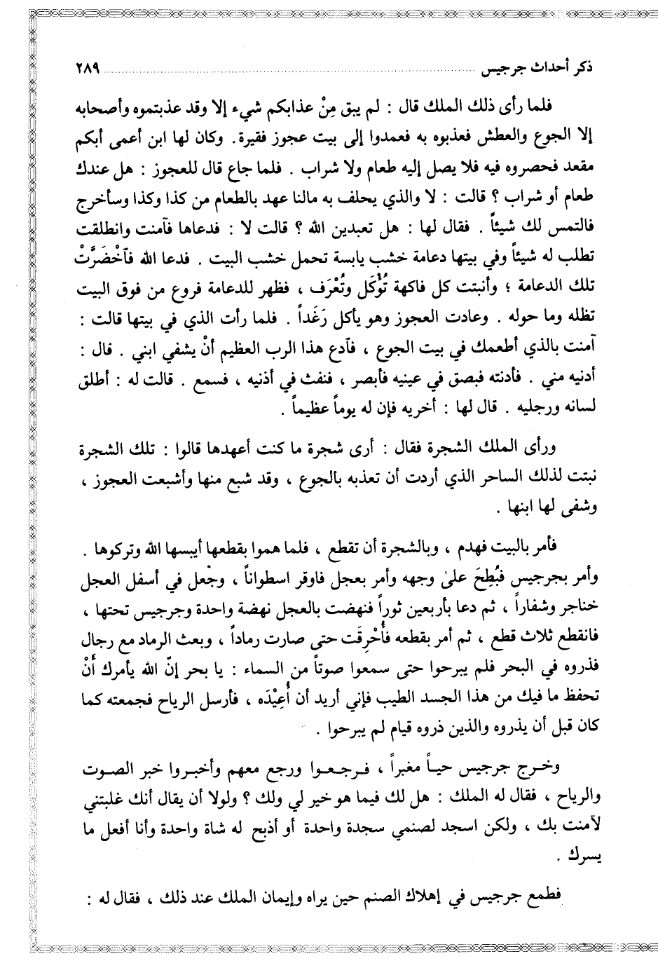 وخرج جرجيس حيا مغبرا فرجعوا ورجع معهم وأخبروا خبر الصوت والرياح فقال له الملك هل لك فيما هو خير لي ولك ولولا أن يقال أنك غلبتني لآمنت بك ولكن اسجد لصنمي سجدة واحدة أو أذبح له شاة واحدة وأنا أفعل ما يسرك