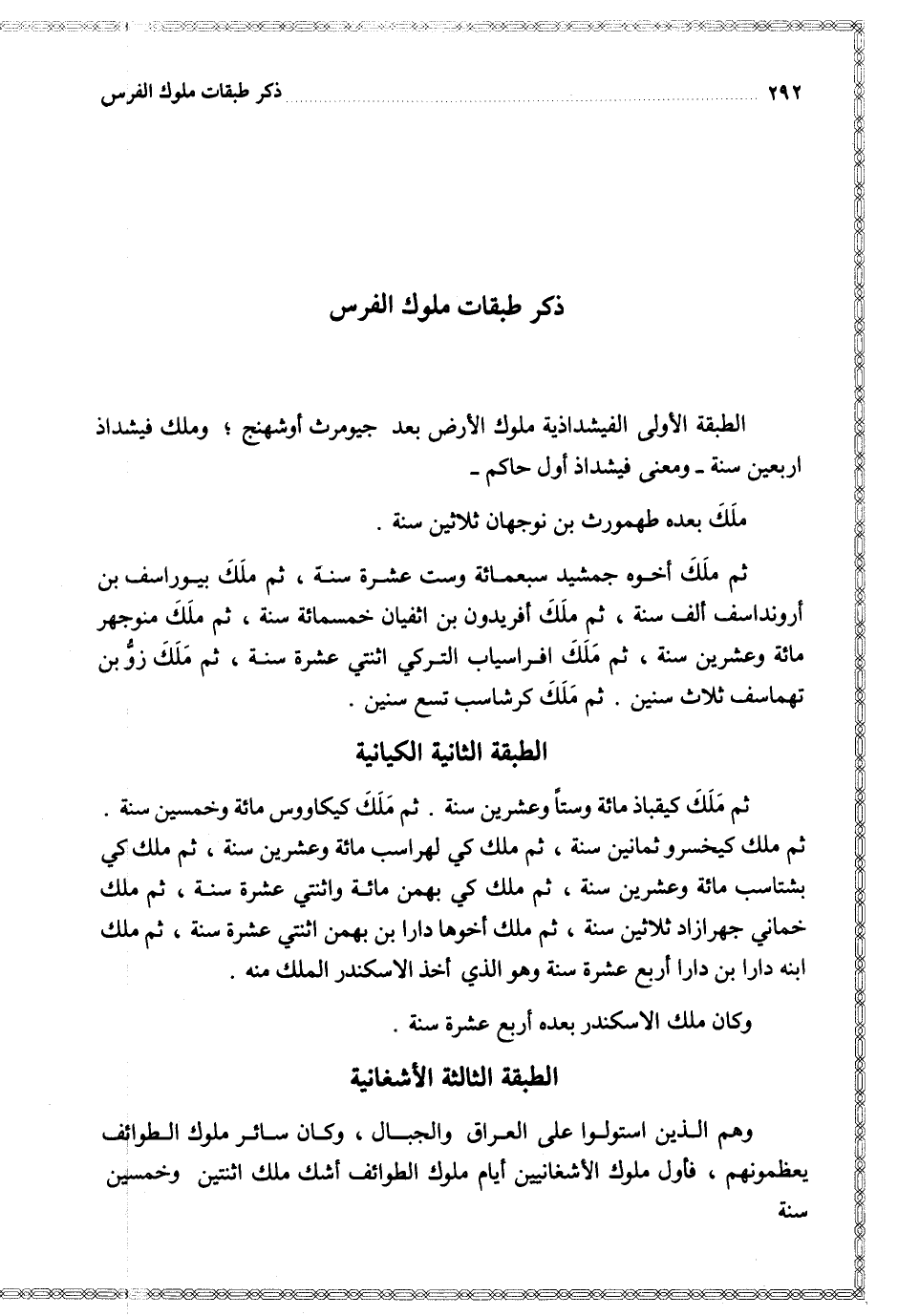 $ ذكر طبقات ملوك الفرس $