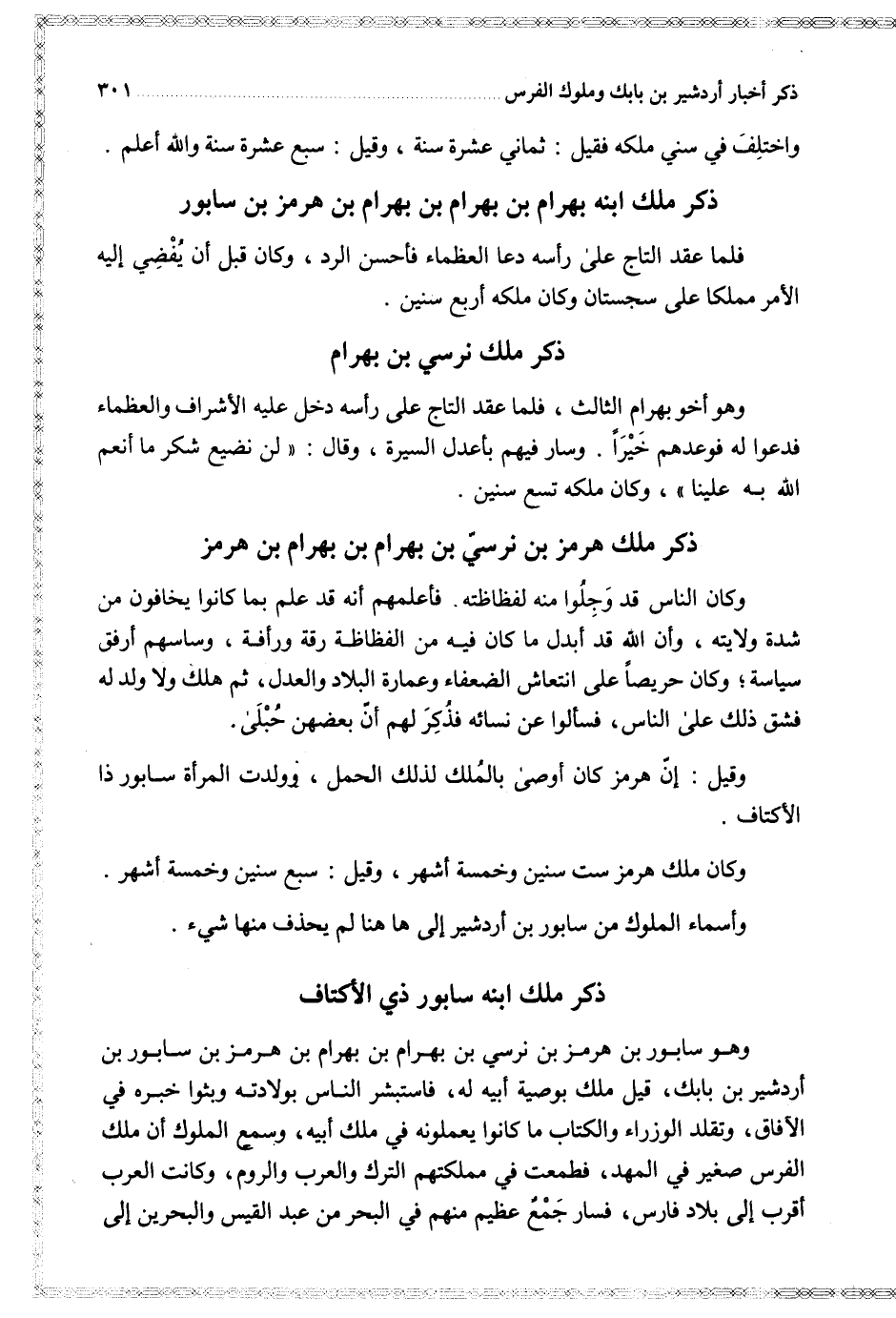وأسماء الملوك من سابور بن أردشير إلى ها هنا لم يحذف منها شيء