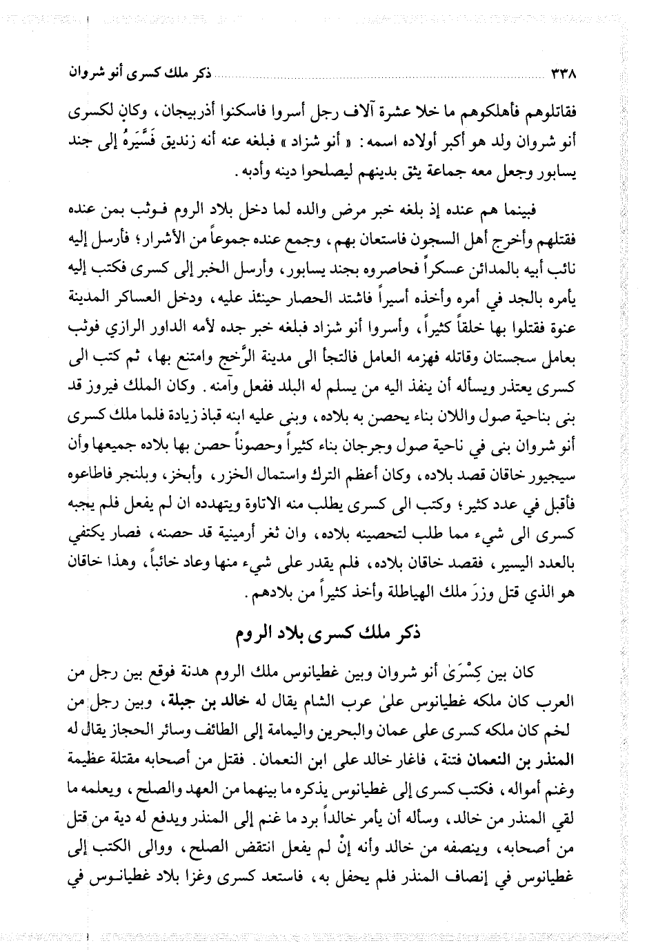 فقاتلوهم فأهلكوهم ما خلا عشرة ألاف رجل أسروا فاسكنوا أذربيجان وكان لكسرى أنوشروان ولد هو أكبر أولاده اسمه أنو شزاد فبلغه عنه أنه زنديق فسيره إلى جند يسابور وجعل معه جماعة يثق بدينهم ليصلحوا دينه وأدبه