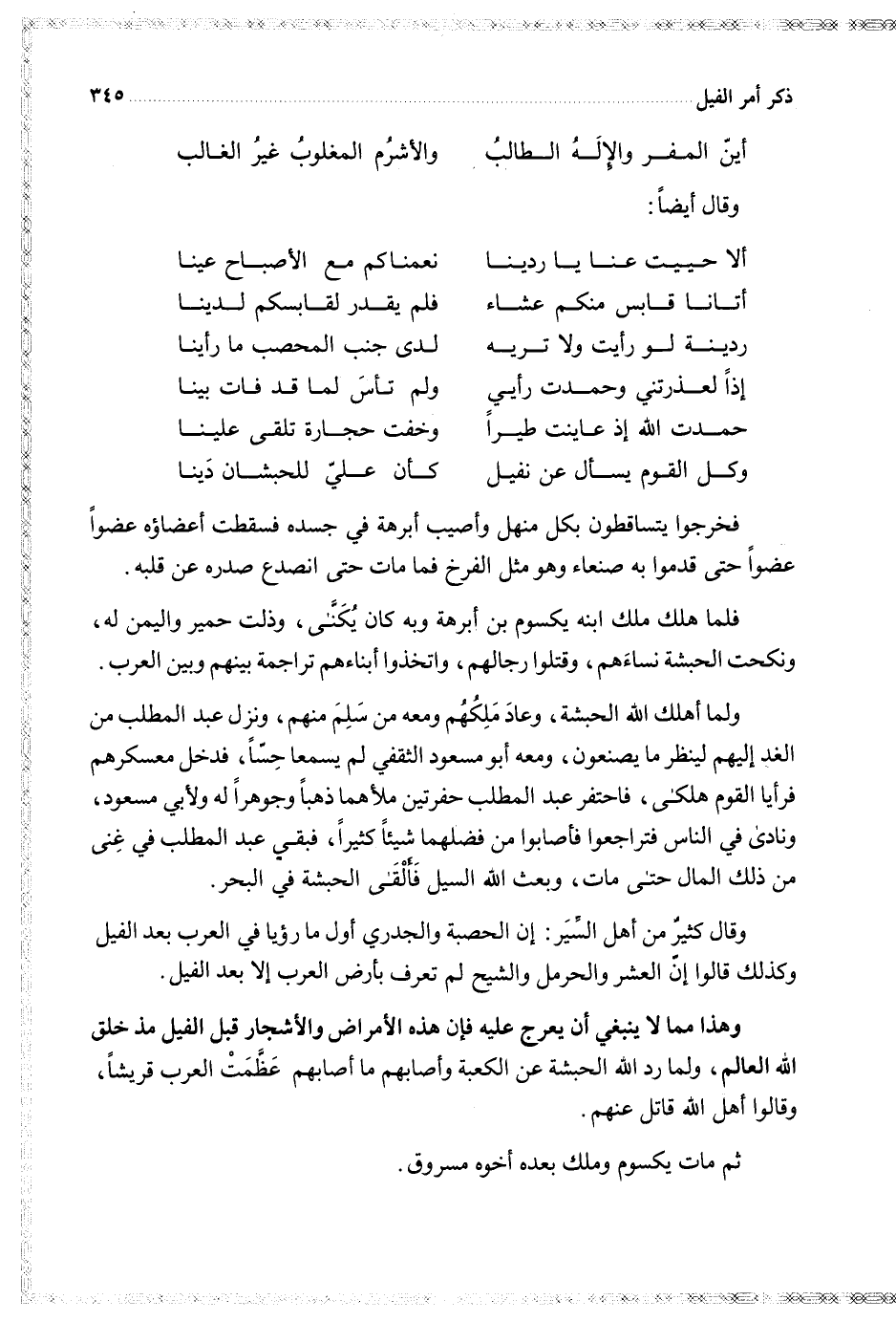 وقال كثير من أهل السير إن الحصبة والجدري أول ما رؤيا في العرب بعد الفيل وكذلك قالوا إن العشر والحرمل والشيخ لم تعرف بأرض العرب إلا بعد الفيل