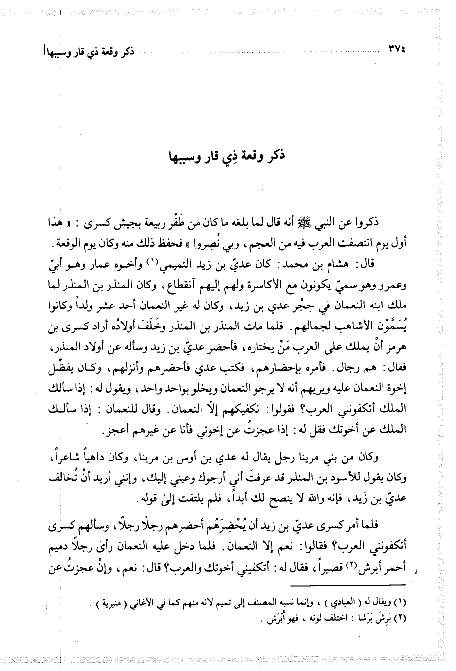 - ذكروا عن النبي أنه قال لما بلغه ما كان من ظفر ربيعة بجيش كسرى (هذا أول يوم انتصفت العرب فيه من العجم وبي نصروا) فحفظ ذلك منه ذلك منه وكان يوم الوقعة