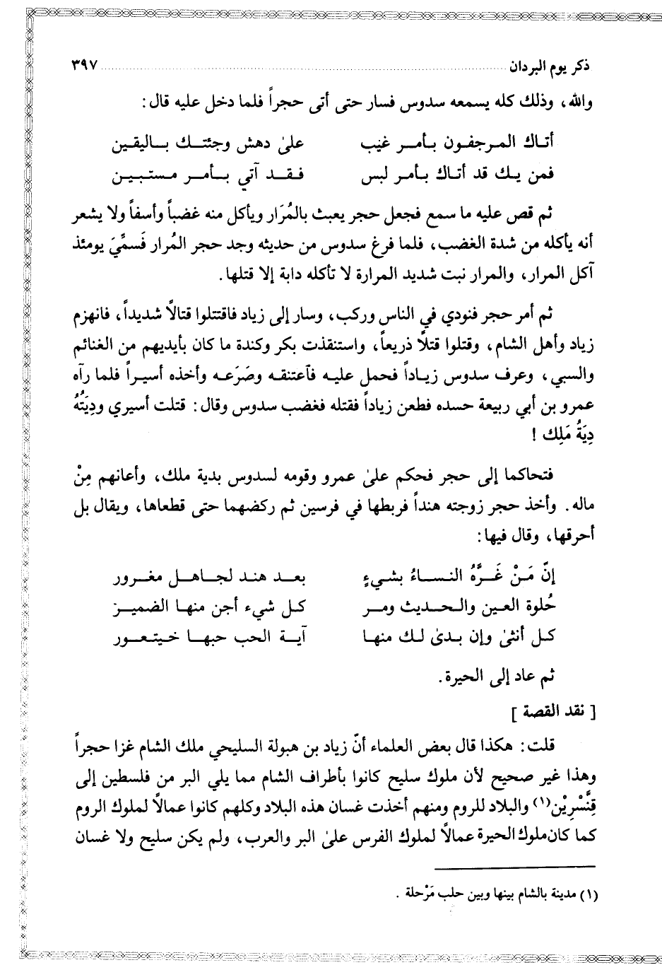 قلت هكذا قال بعض العلماء أن زياد بن هبولة السليحي ملك الشام غزا حجرا وهذا غير صحيح لأن ملوك سليح كانوا بأطراف الشام مما يلي البر من فلسطين إلى قنسرين والبلاد للروم ومنهم أخذت غسان هذه البلاد وكلهم كانوا عمالا لملوك الروم كما كان ملوك الحيرة عمالا لملوك الفرس على البر والعرب ولم يكن سليح ولا غسان