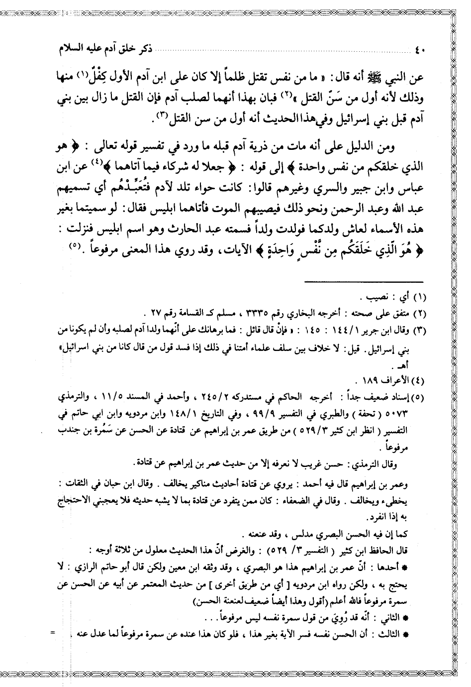 عن النبي أنه قال ما من نفس تقتل ظلما ال كان ابن آدم الأول كفل منها وذلك لأنه أول من سن القتل فبان بهذا أنهما لصلب آدم فإن القتل ما زال بين بني آدم قبل بني إسرائيل وفي هذا الحديث أنه أول من سن القتل