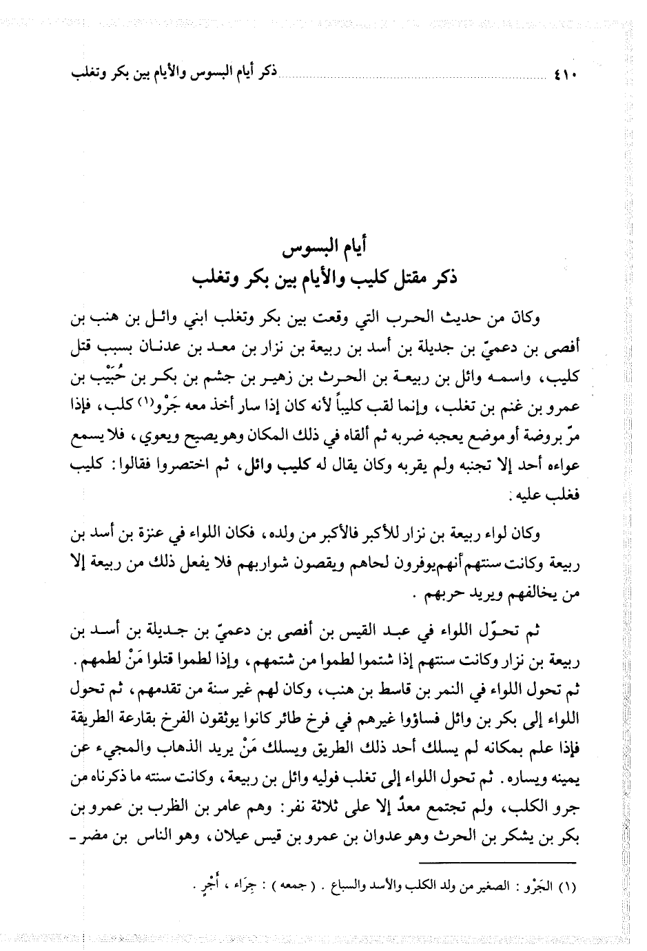 $ أيام البسوس ذكر مقتل كليب والأيام بين بكر وتغلب $