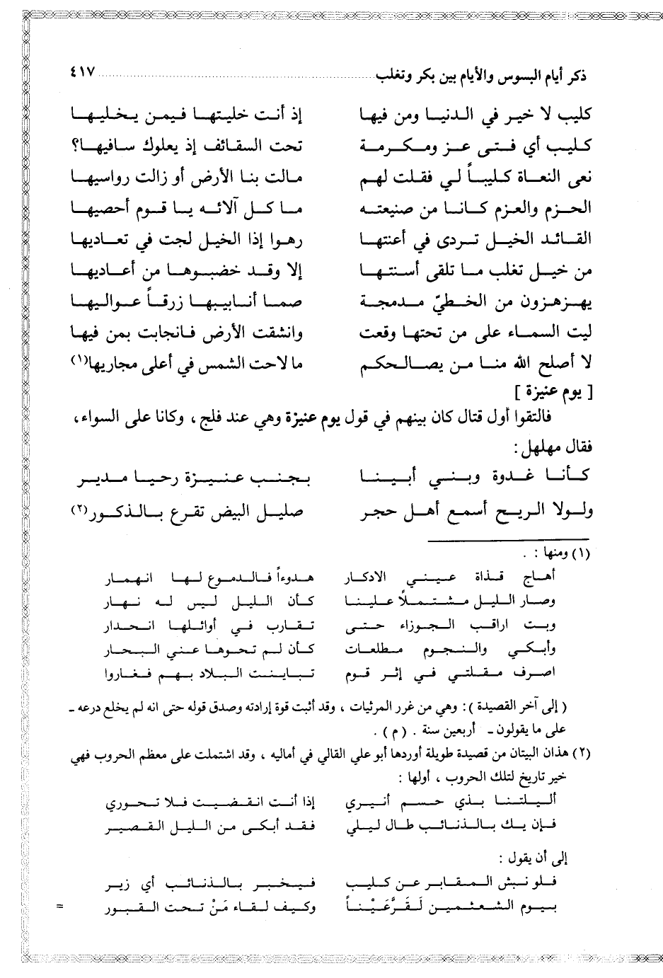 (كأنا غدوة وبني أبينا ... بجنب عنيزة رحيا مدير)